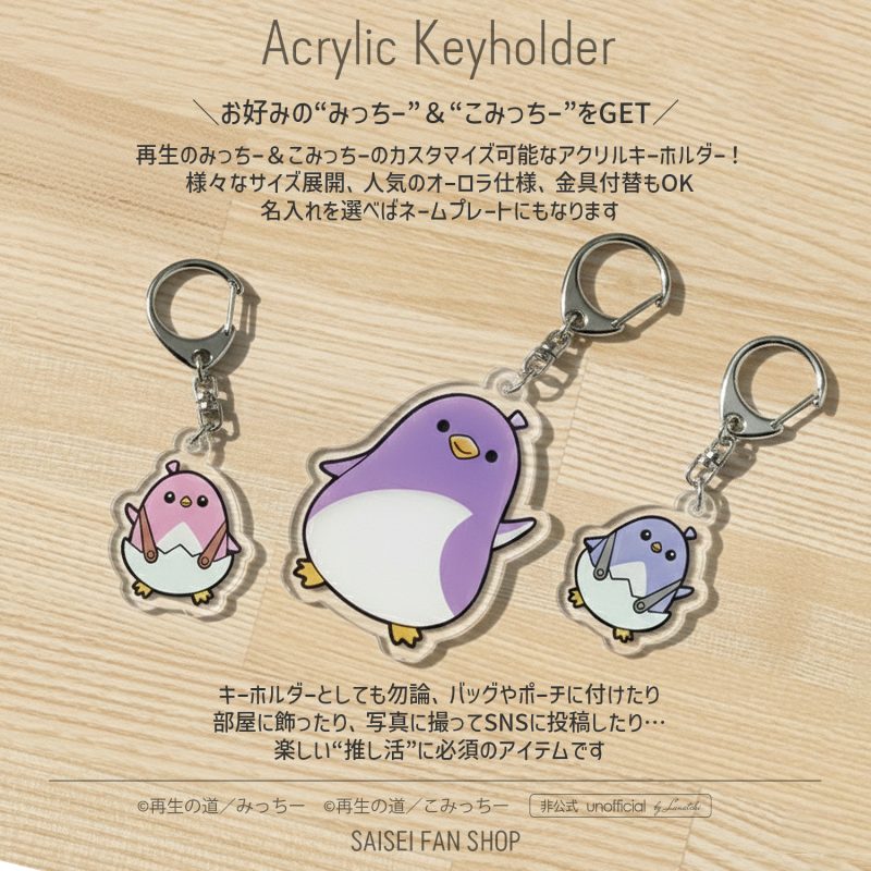 再生のみっちー&こみっちーが、カスタマイズ可能なアクリルキーホルダーになりました!