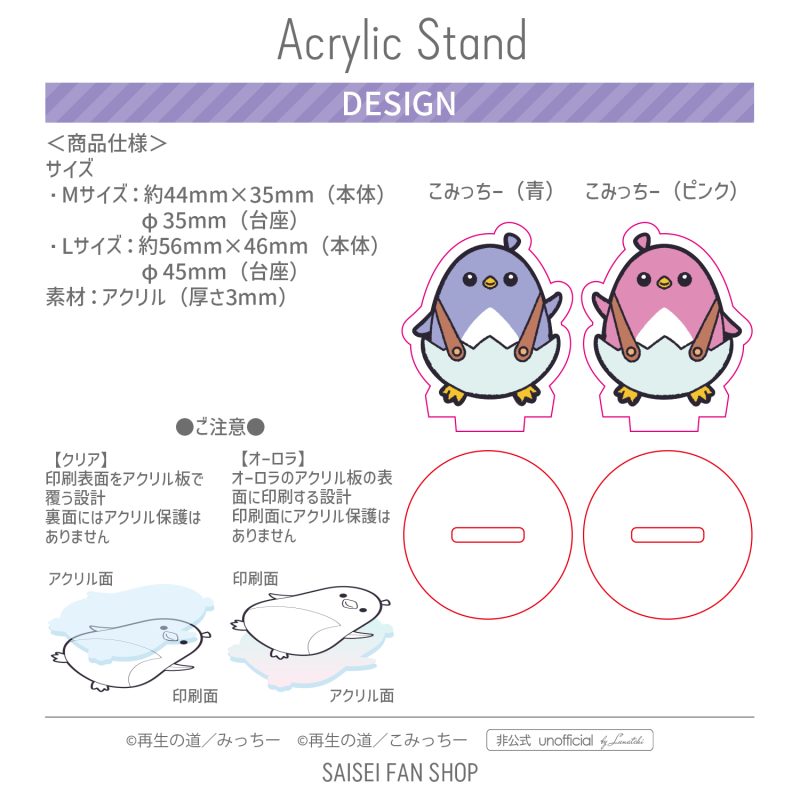 2サイズ展開、アクリル板はクリアとオーロラの2タイプ